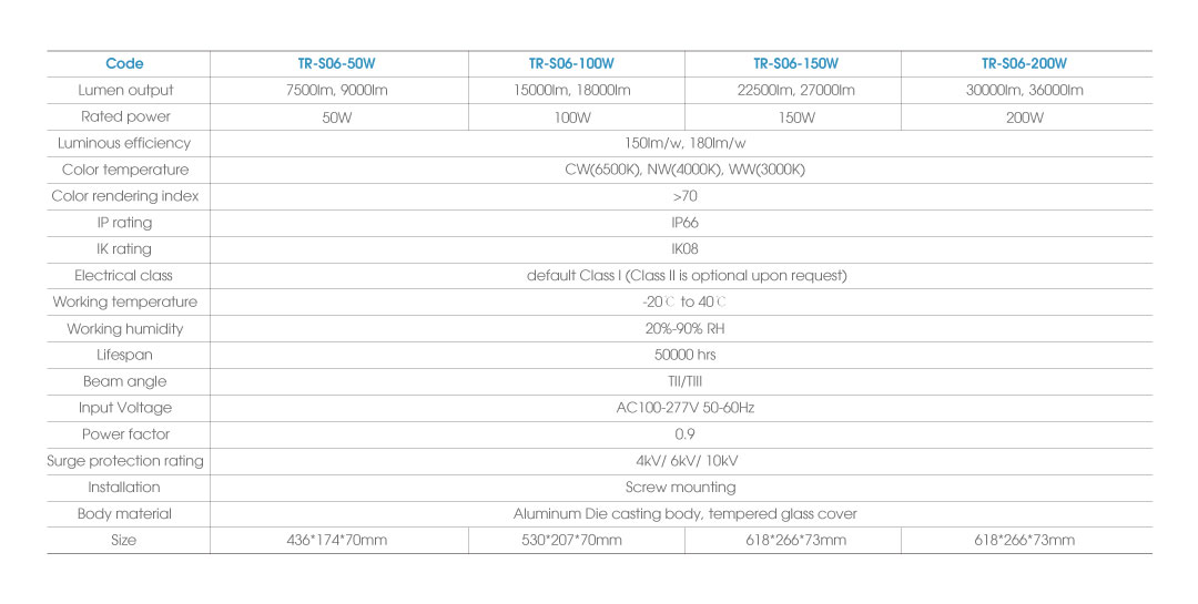 Lumen efficiency: up to 180lm/w  RA≥70