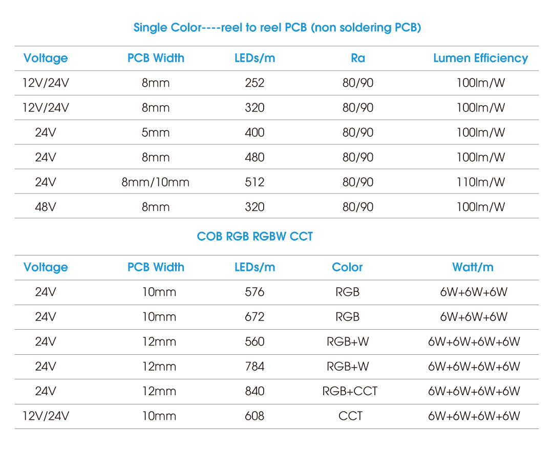 • 12V/24V/48V COB