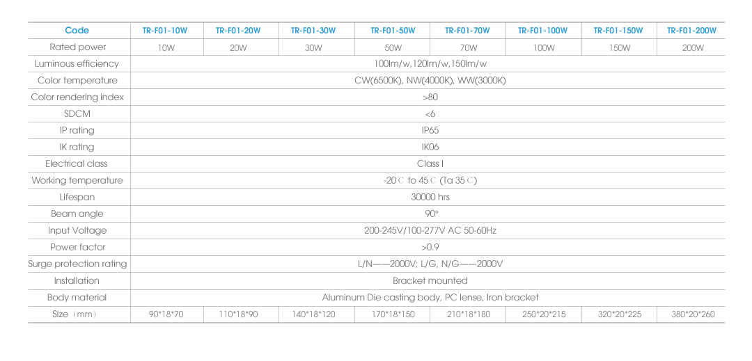 Wattage:10W;20W;30W;50W;70W;100W;150W;200W